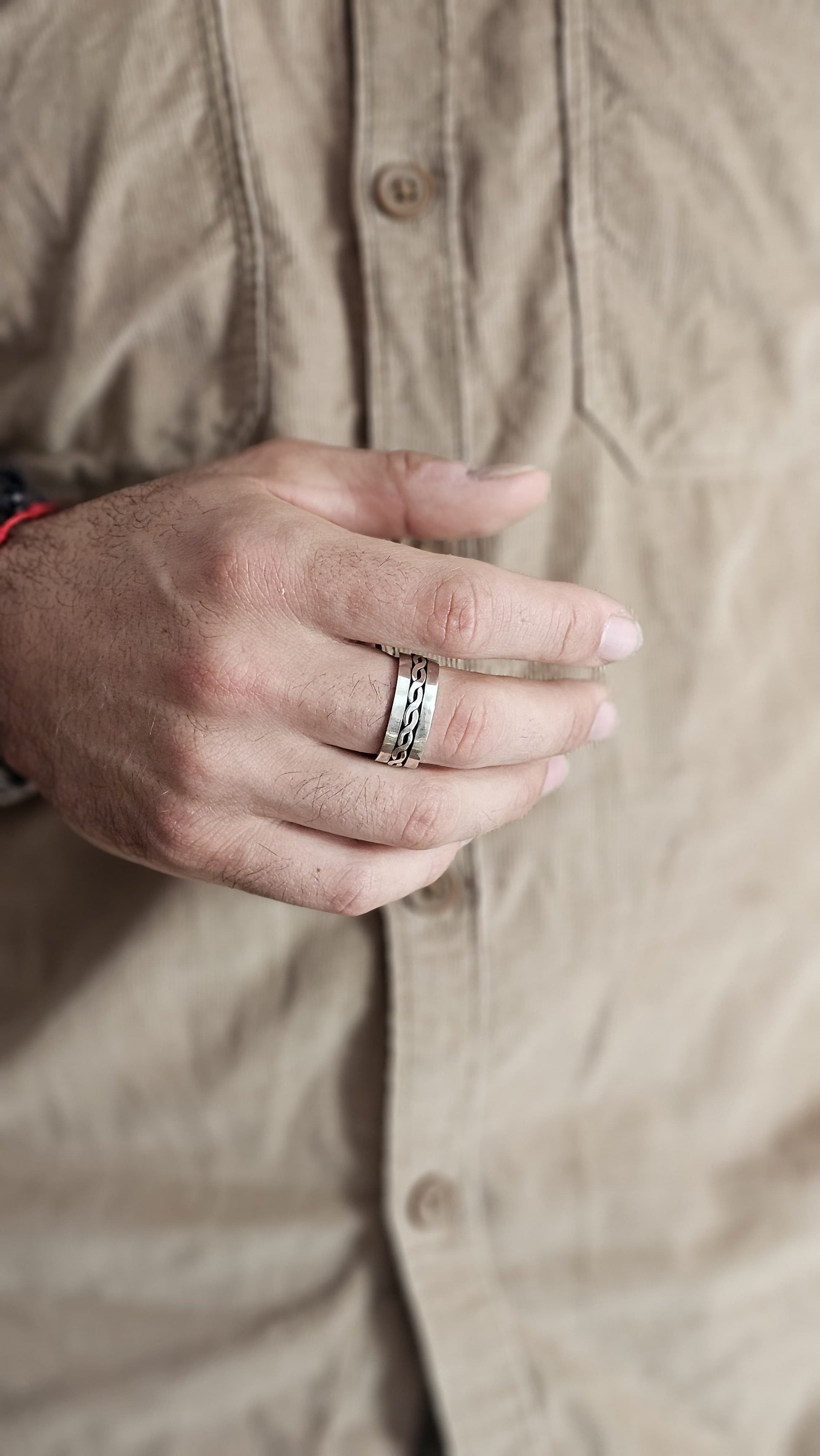Anillo en plata 925 hecho a mano con detalle central de trenza.