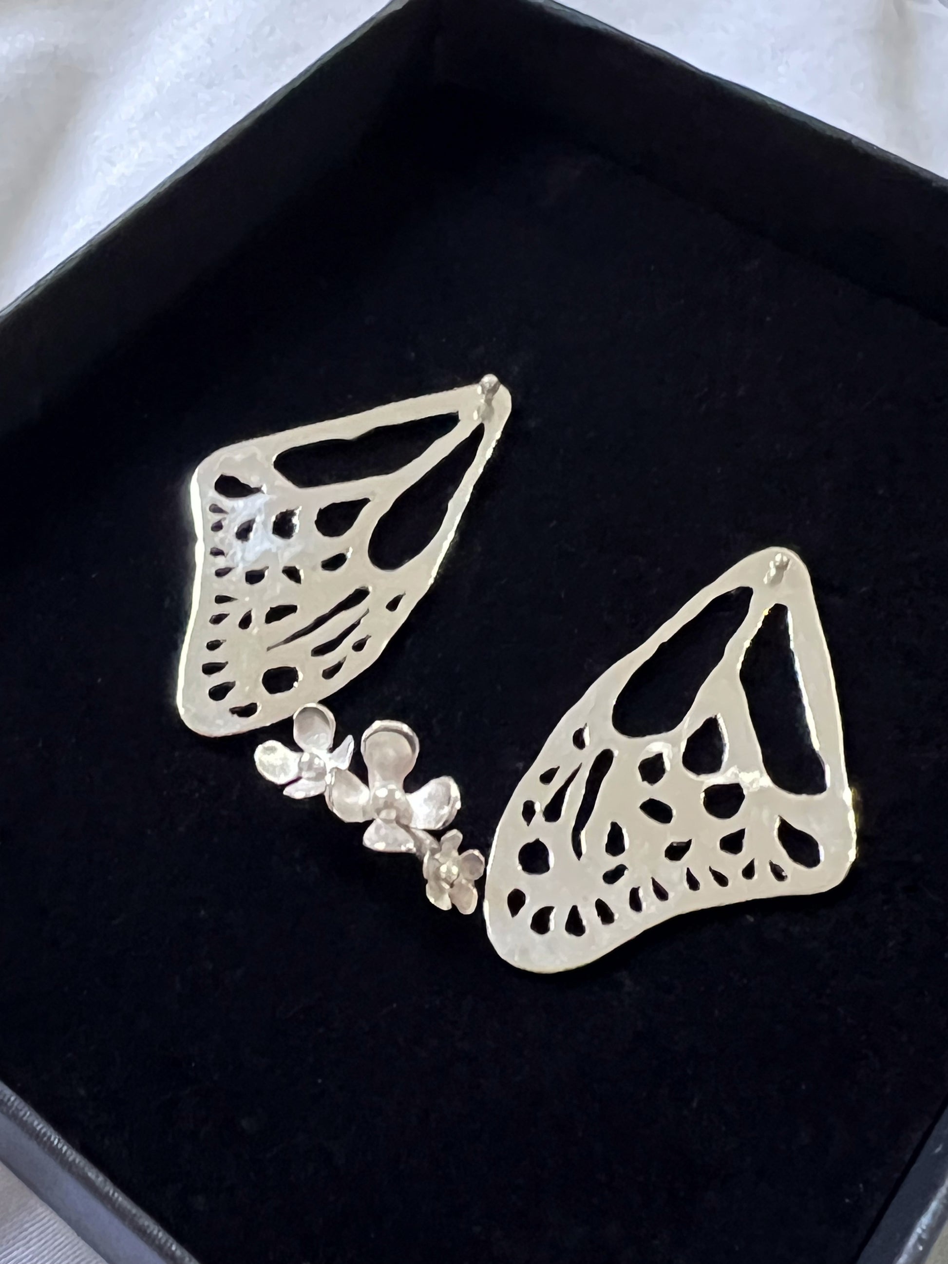 Pendientes de alas de mariposa realizados en plata 925.